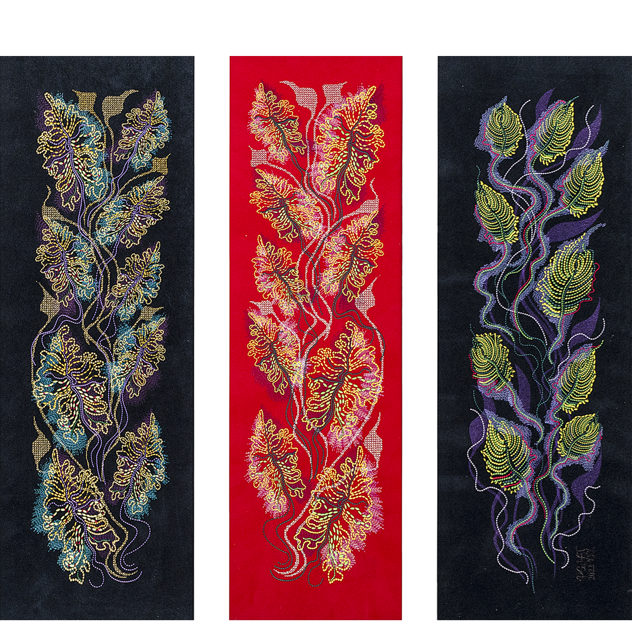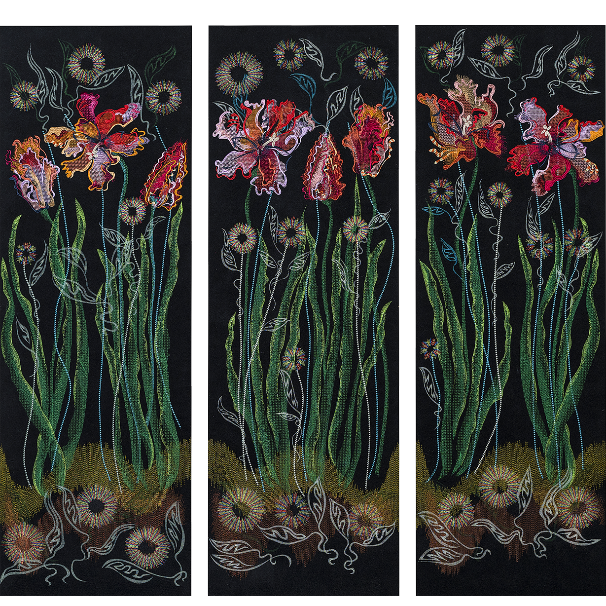 A tribute to nature in a series of reimagined flowers and natural scenes meticulously machine-embroidered on luxurious wool. Available in different sizes and carefully crafted as single editions in unique colour palettes.