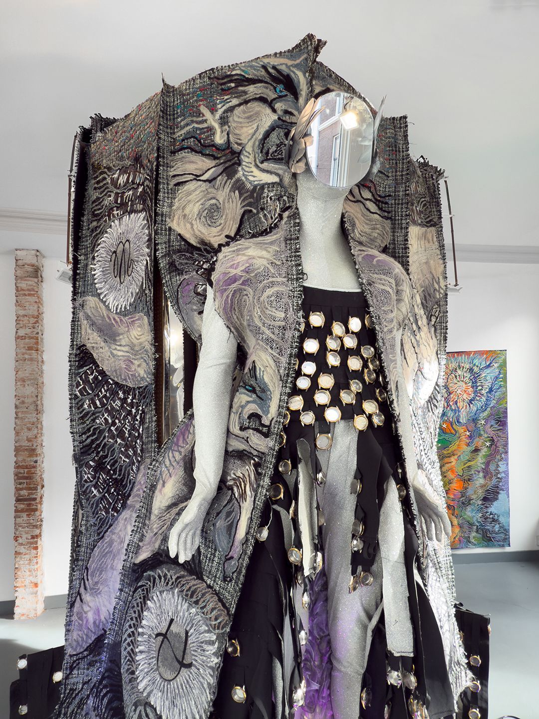 Hij is vooral bekend om zijn Sartorial Statues—draagbare soft sculptures die couture naar het domein van de beeldende kunst tillen—en monumentale wandkleden waarin thema’s als natuur, ritueel en transformatie centraal staan. Zijn praktijk echoot Thomas Carlyle’s idee van het leven als “A Living Garment, woven and ever-a-weaving in the Loom of Time”.