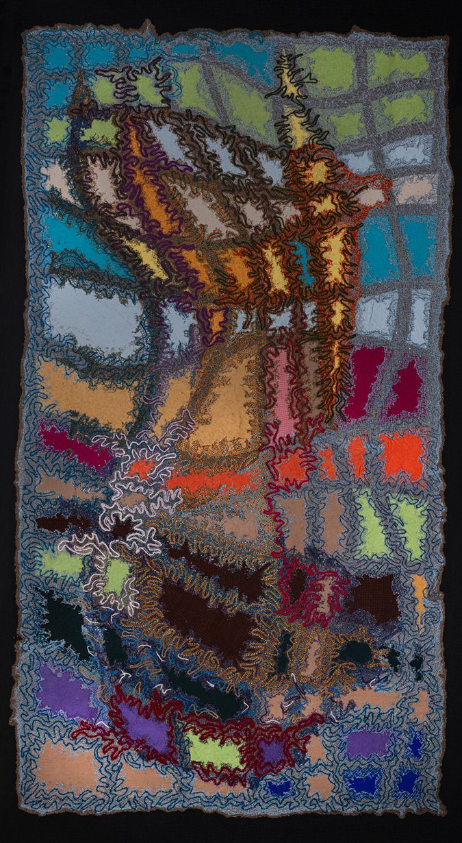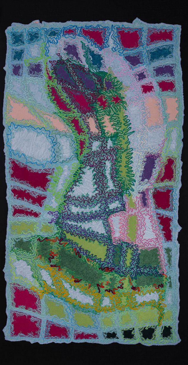 Four needle-felted landscapes and a couture-based soft sculpture reimagine the mythical, flower-filled realm ASPHODEL MEADOW. In Homeric tradition, the Asphodel Meadow was the resting place of ordinary souls—neither a paradise nor a place of punishment.