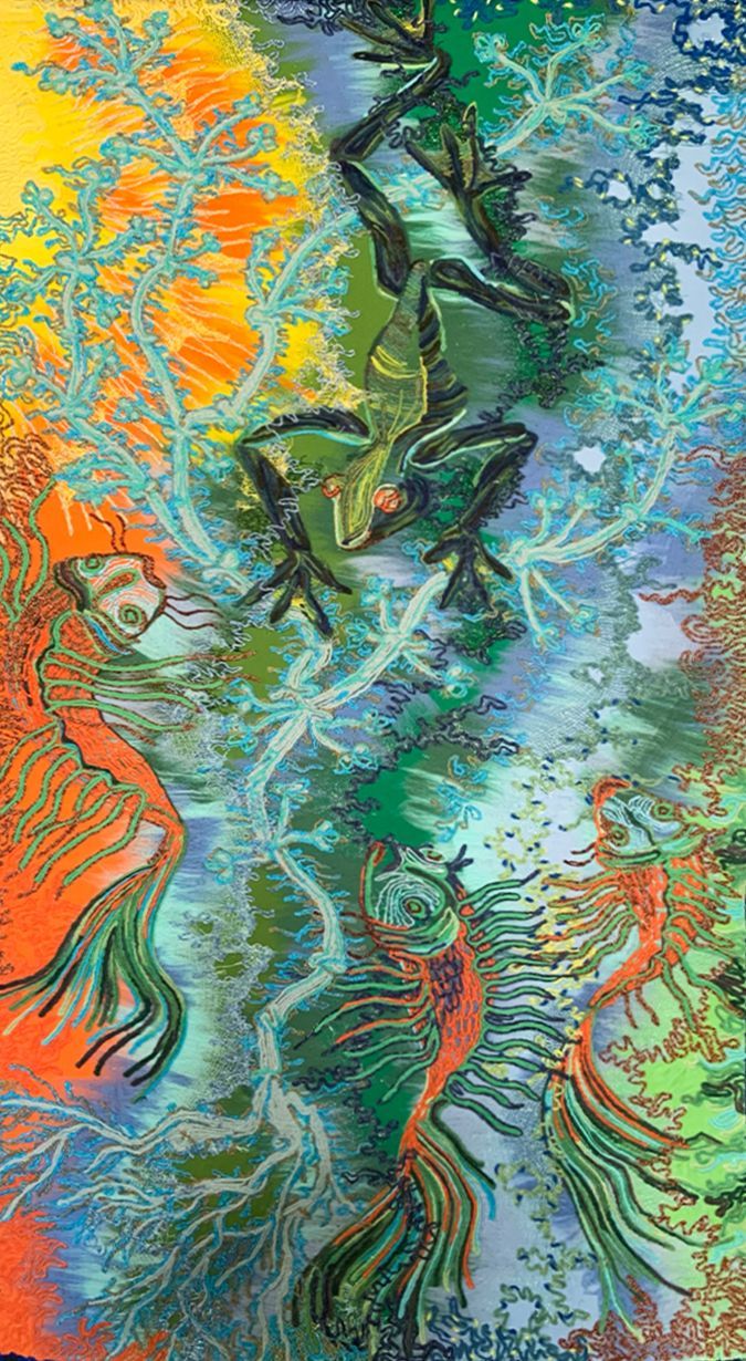 Four works present multiple visions of the ‘Tree of Life,’ an archetypal symbol deeply rooted in numerous mythologies and religious traditions, and as a motif a recurring subject in d'Angelino Tap's work. The collective title of the series references Paradise Regained, the "brief epic poem" by the English poet John Milton.